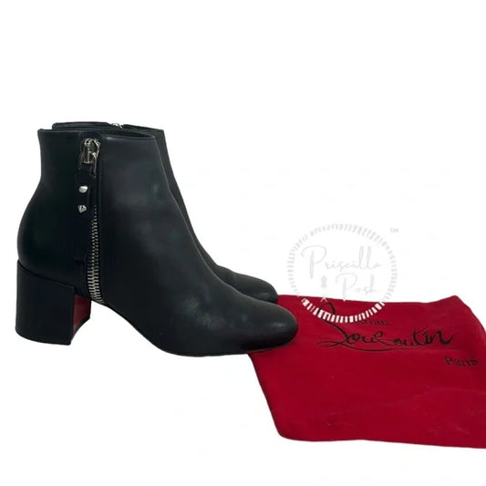 Christian Louboutin Ziptotal Calfskin Red Sole Booties Black leather Block Heel