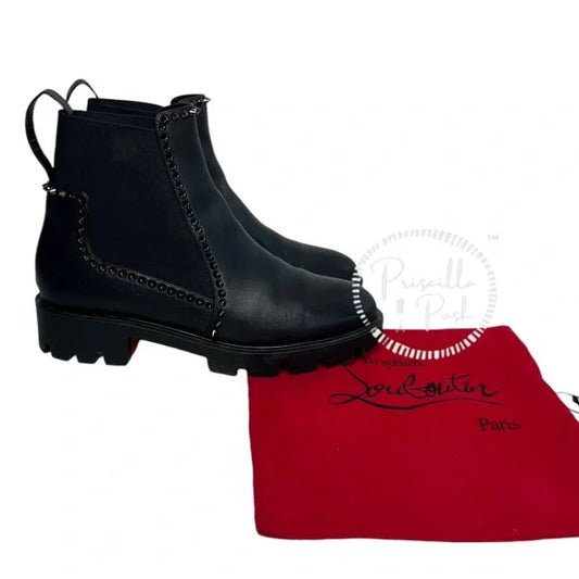 Christian Louboutin Out Lina Spike Lug Boots Black Leather Silver Spike Lug Sole