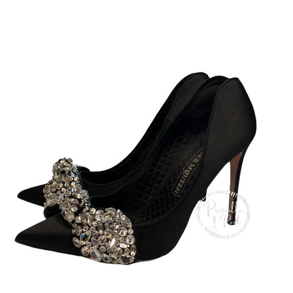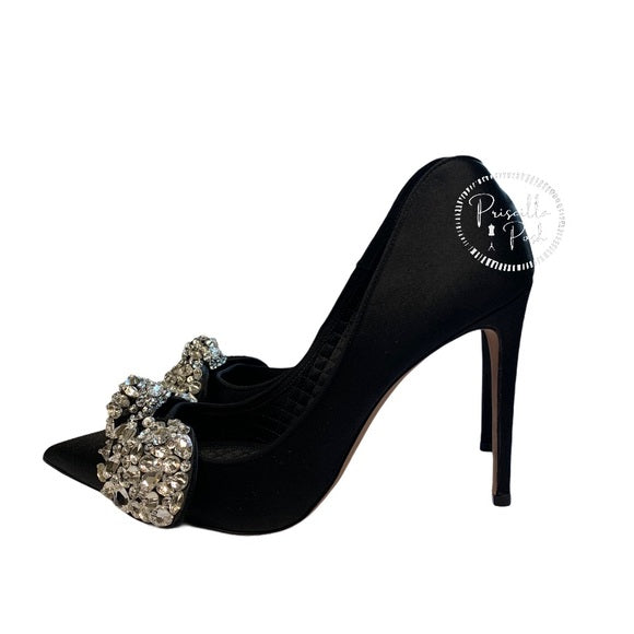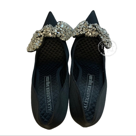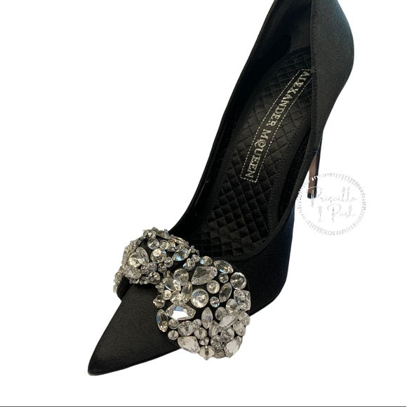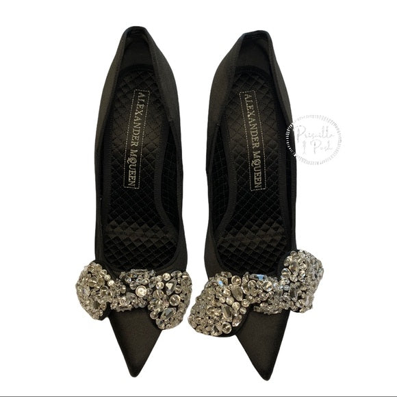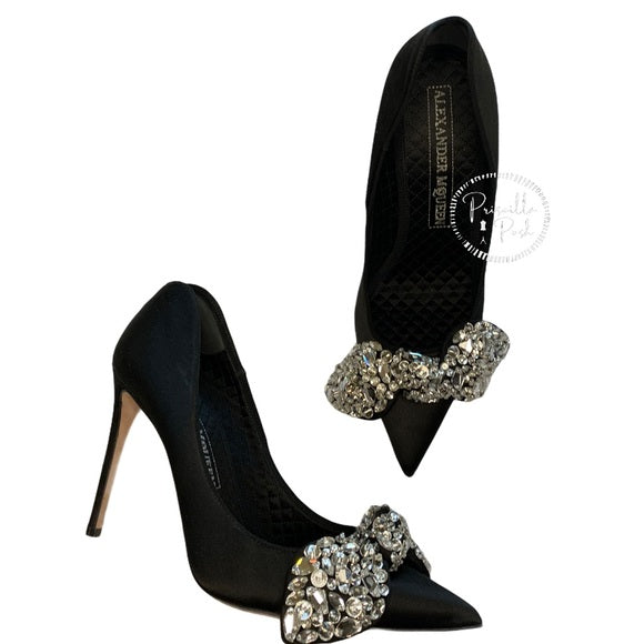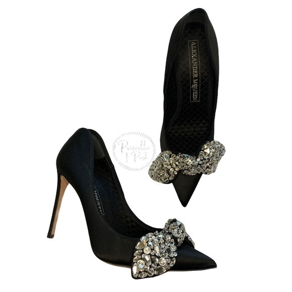 Alexander Mcqueen Black Satin Crystal Bow Pumps