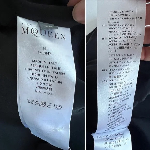 Alexander McQueen Women's Black Tuxedo Dress Double Breasted Satin Lapel A-Line