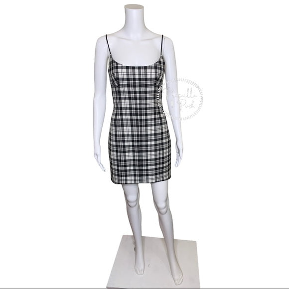 ALEXANDER WANG Plaid Checkered Black White Tailored Mini Cami Dress