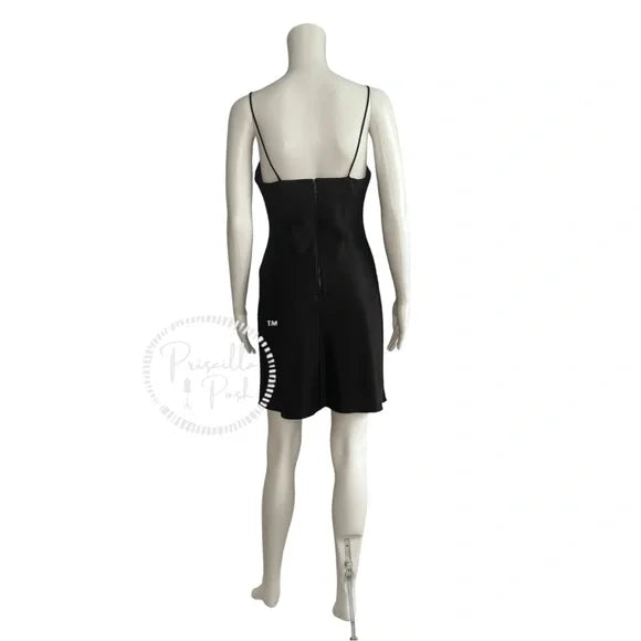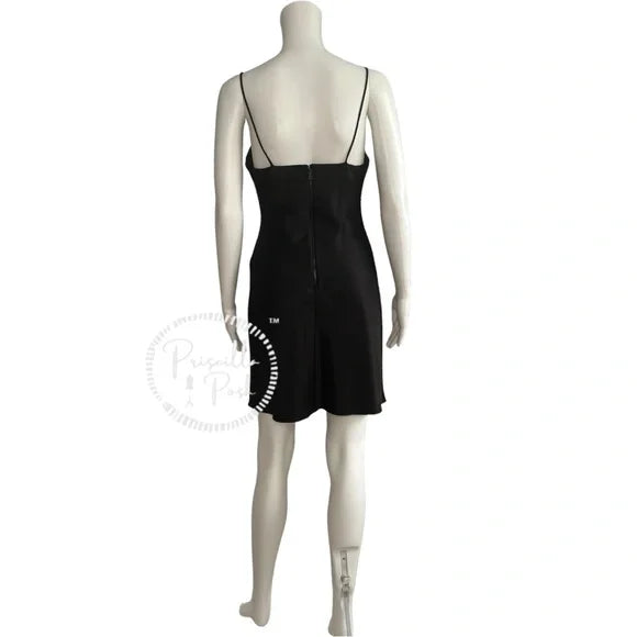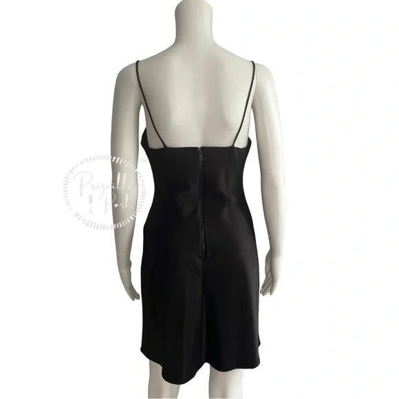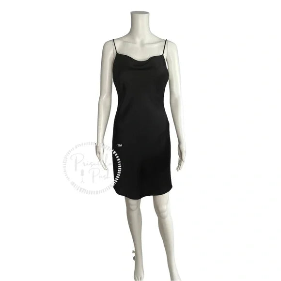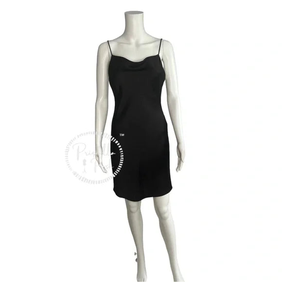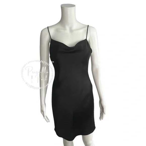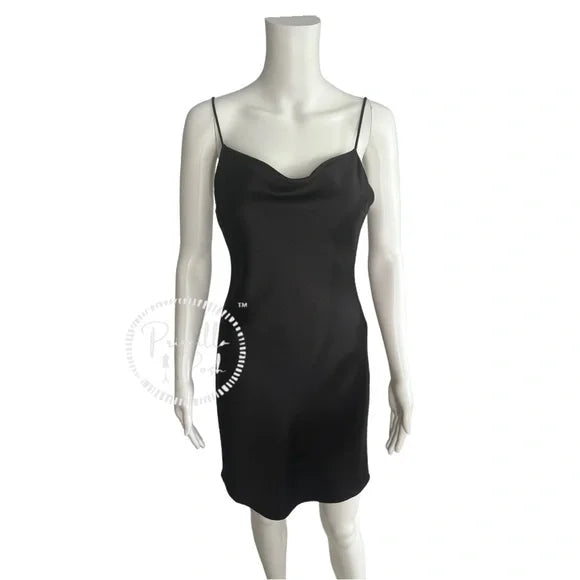 Alice and Olivia Harmony Black Mini Slip Dress Black Satin Cowl Neck