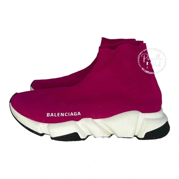 Balenciaga Speed 2.0 Sneaker in dark pink recycled knit, white and black sole 8