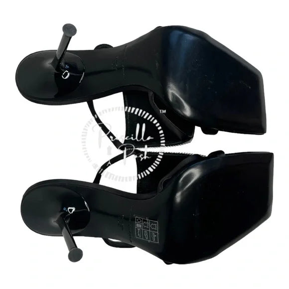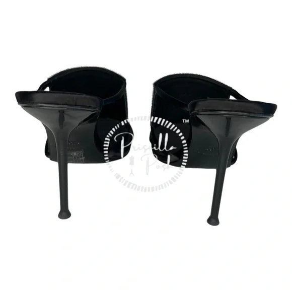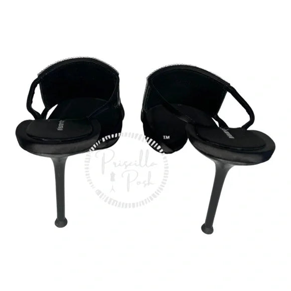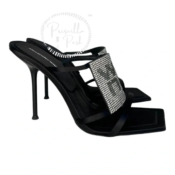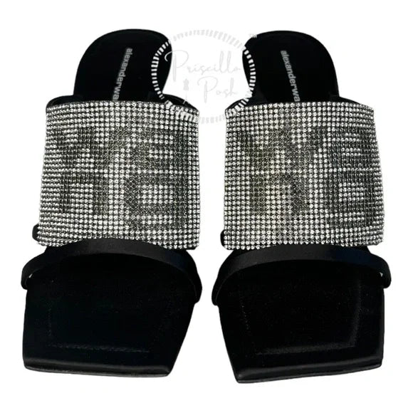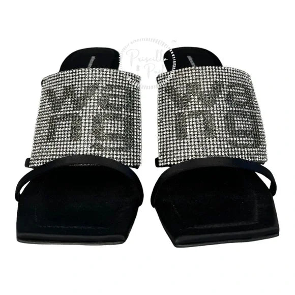Alexander Wang Rhinestone Logo Heels Slides Black Silver
