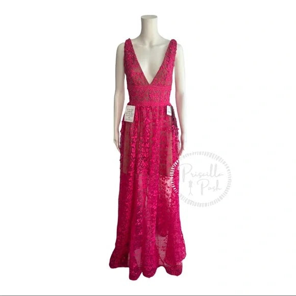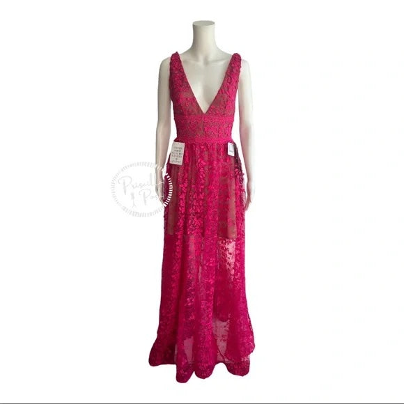 Bronx & Banco Megan Fuchsia Maxi Dress Sheer Tulle Gown