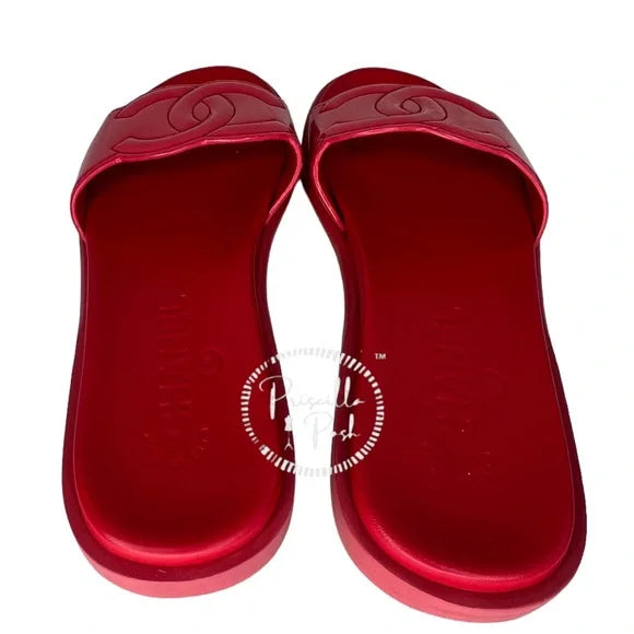 Chanel Red Patent Maxi Cc Logo Mules Slides 35 Red Pink Coral Sandals