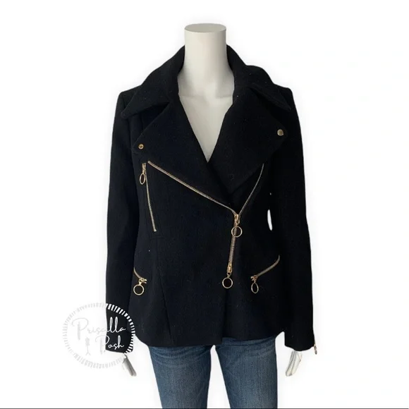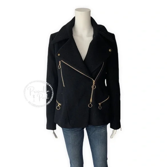Chloe Womens Black and Gold Motorcycle Jacket Black Washed Wool