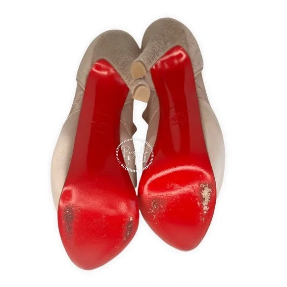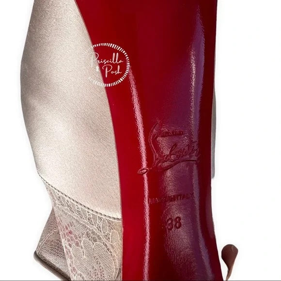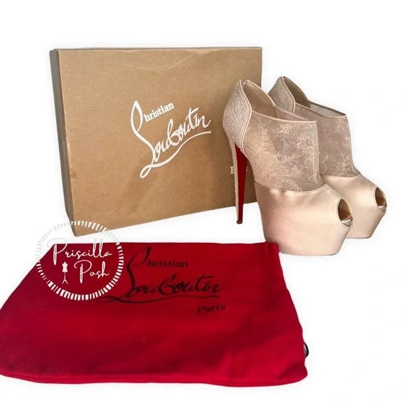 Christian Louboutin Aeronotoc 160 Booties Satin Lace Platform Ankle Boots Nude 38
