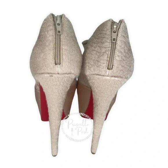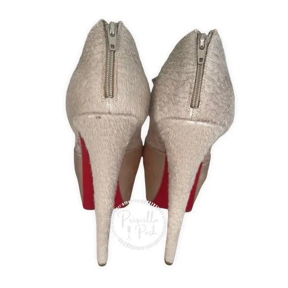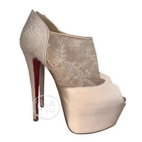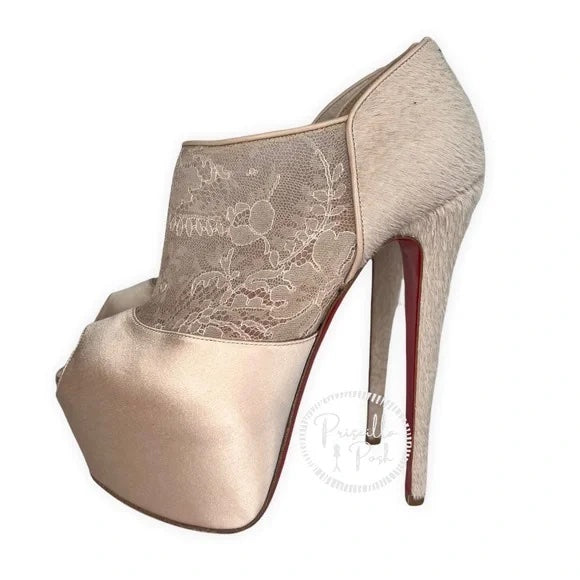 Christian Louboutin Nude Satin Lace Chantilly Astrakan Aeronotoc 160 Bootie Special Edition