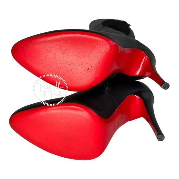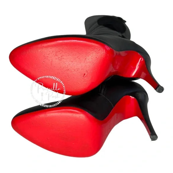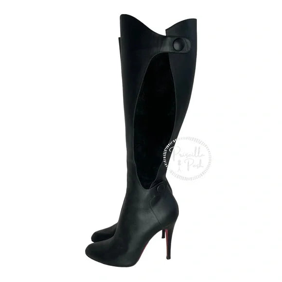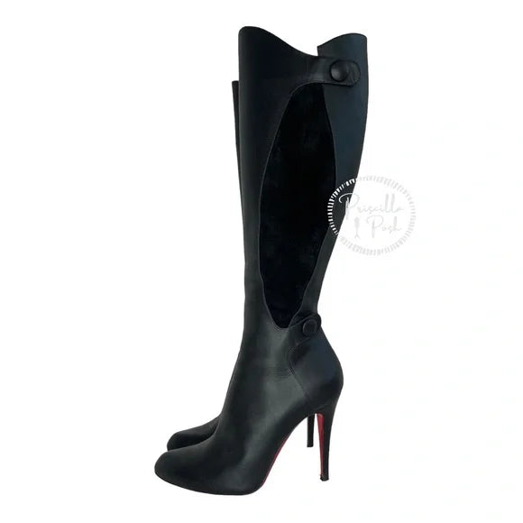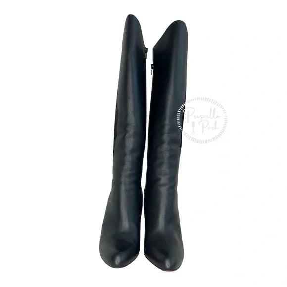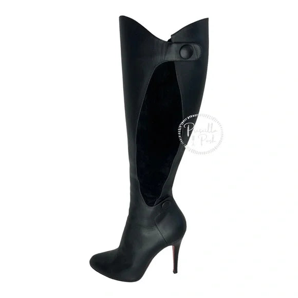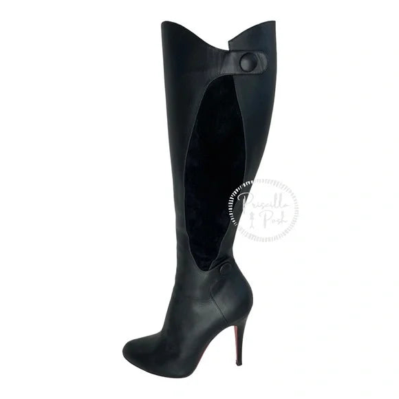 Christian Louboutin Black Leather and Suede Knee High Heeled Boots 38.5