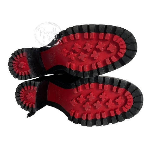 Christian Louboutin Black Leather Rubber Lug Sole Lace Up Combat Boots Studded