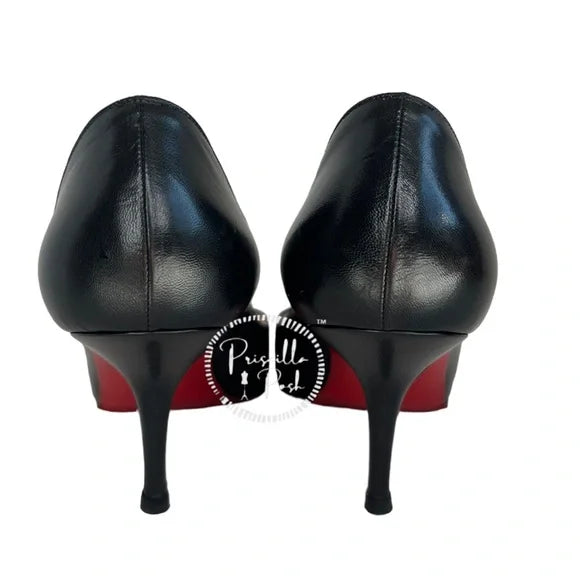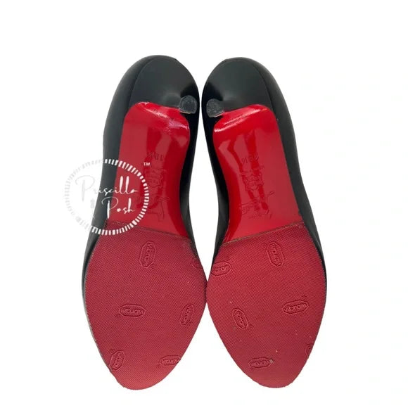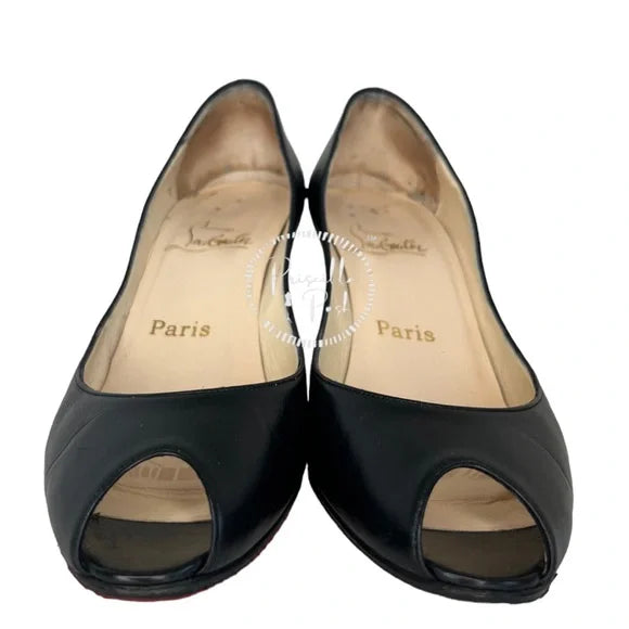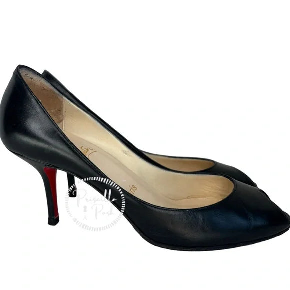Christian Louboutin Black Leather Peep Toe Kitten Heel Pumps Heels 38.5