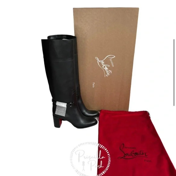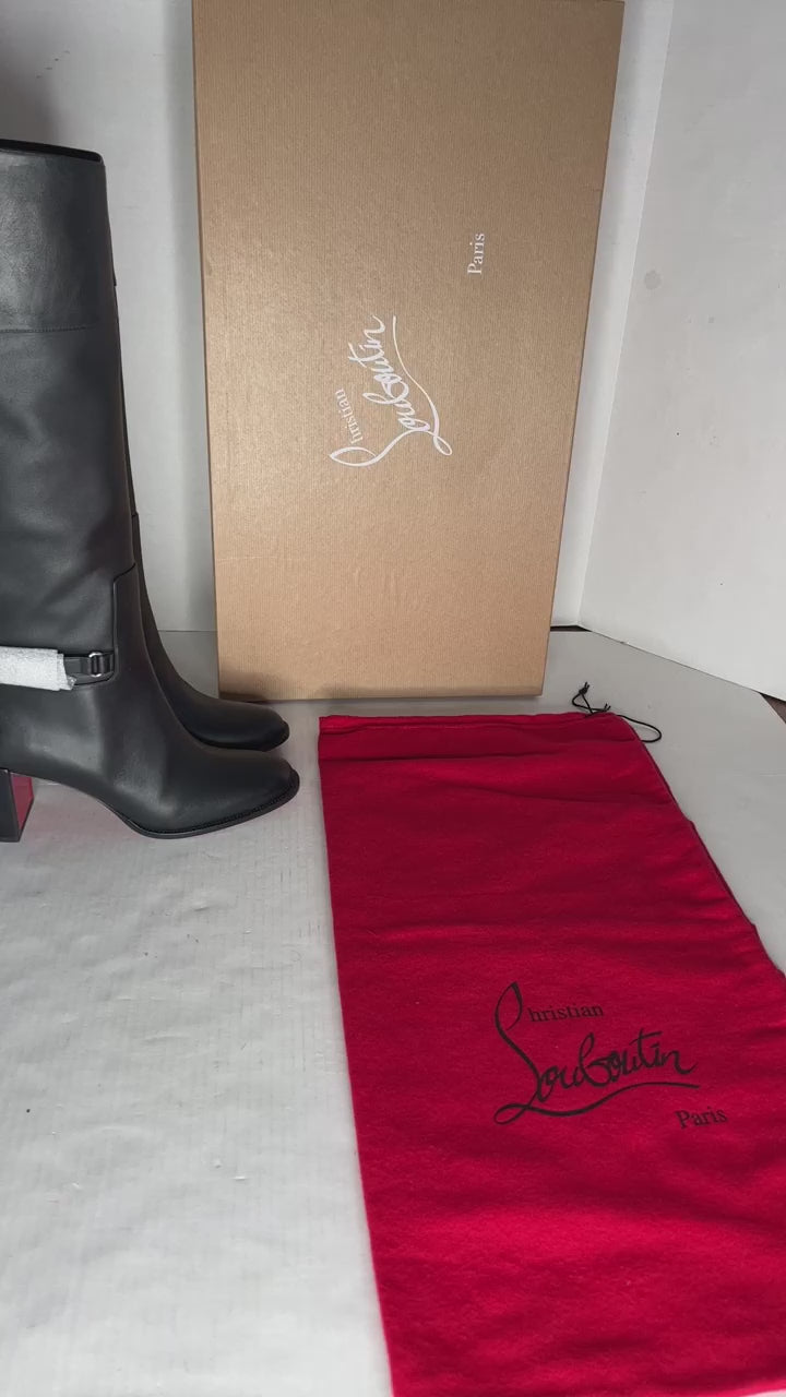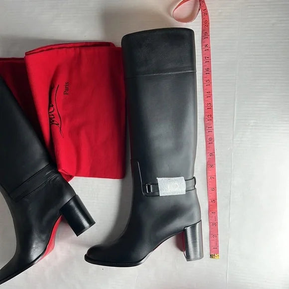 Christian Louboutin Black Lock 70 Leather Knee-high Boots Tall Block heel 39.5