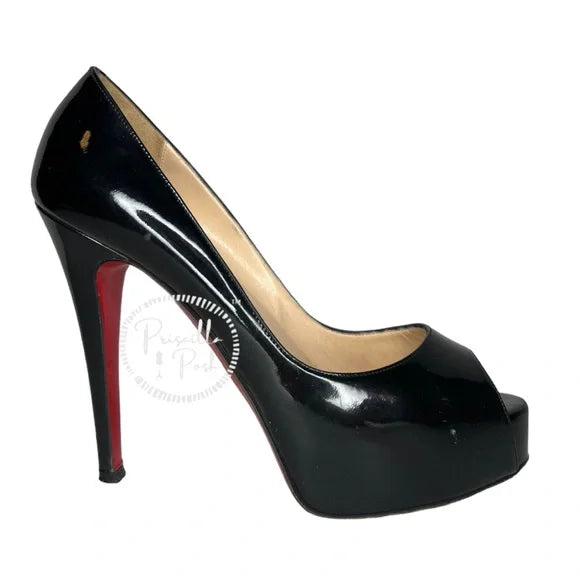 Christian Louboutin Black Patent Leather Peep Toe Platform Pumps