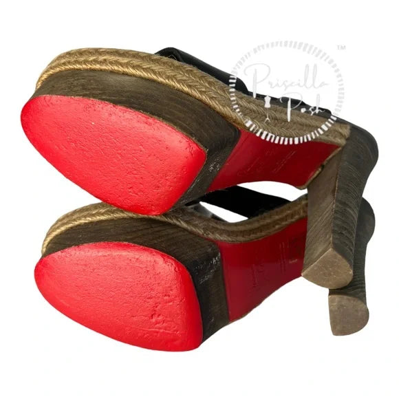 Christian Louboutin Black Platform Ankle Strap Platform Espadrille Sandal
