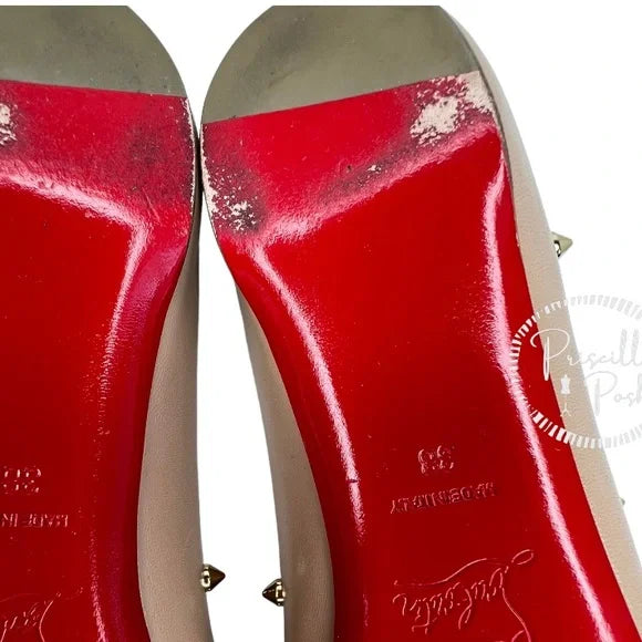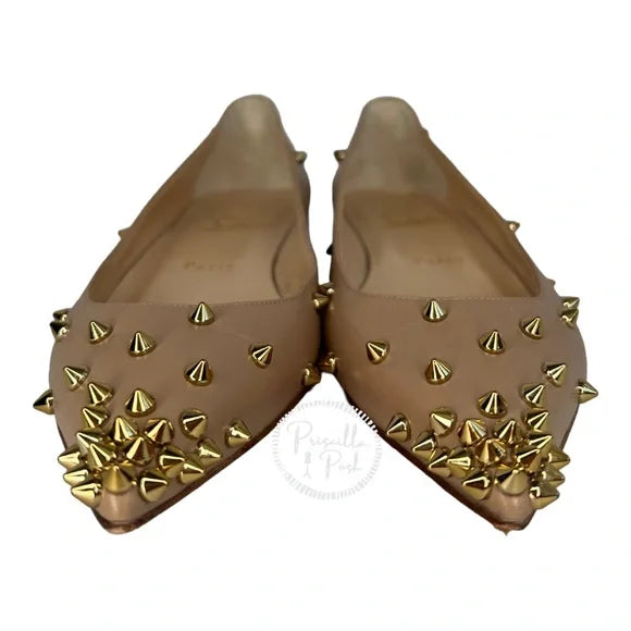 Christian Louboutin Degraspike Studded Point-Toe Red Sole Flat, Neutral Gold 38