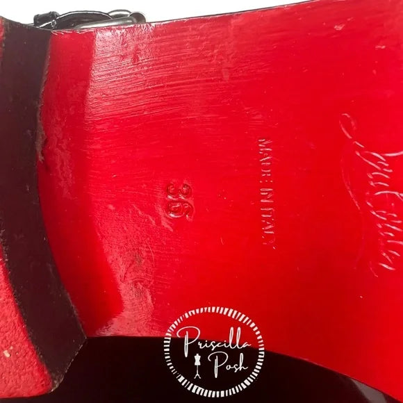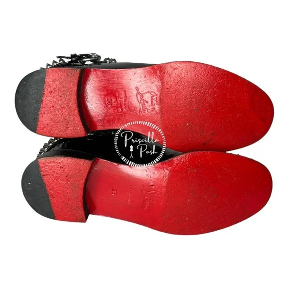 Christian Louboutin Egoutina Calfskin black Patent leather Spike Boots Combat 36