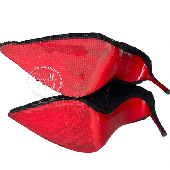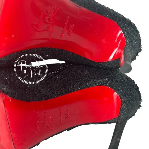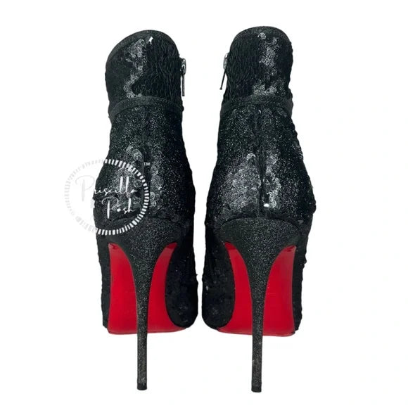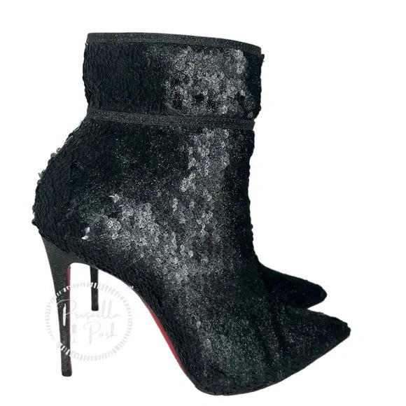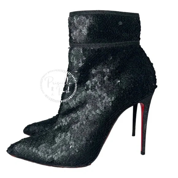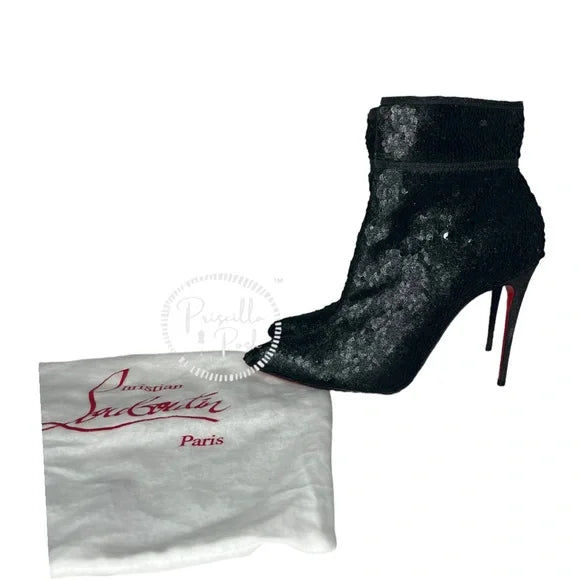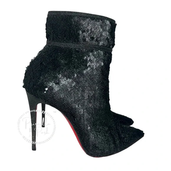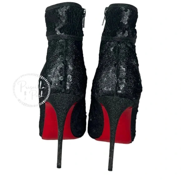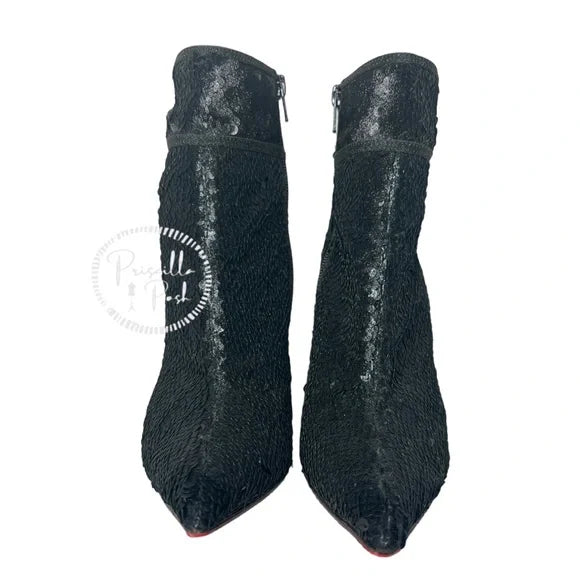 Christian Louboutin Moulakate Black Sequin Glitter Pointed Toe Ankle Boots 37.5