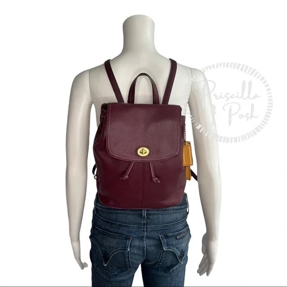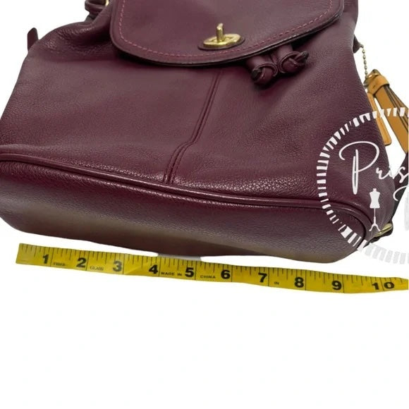 Coach Park Pebbled Leather Flap F24385 Burgundy Backpack Maroon Red Brass