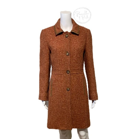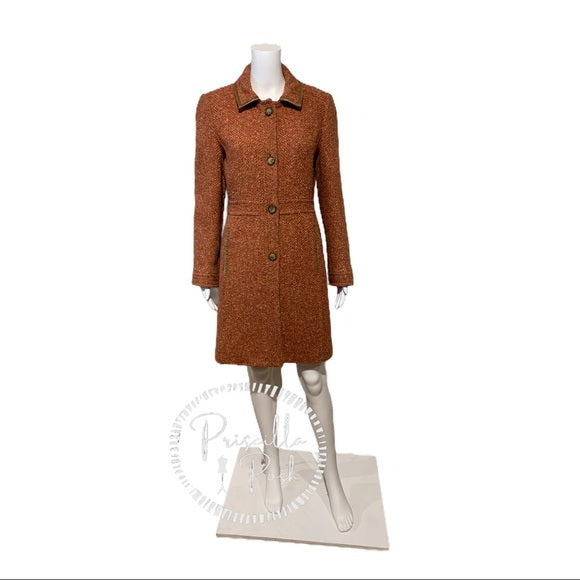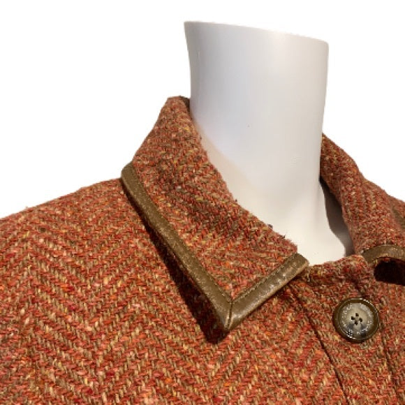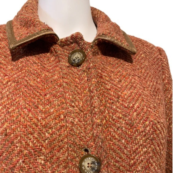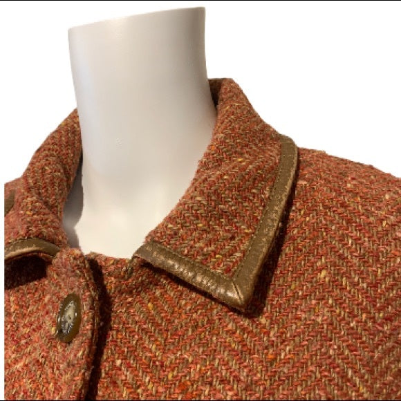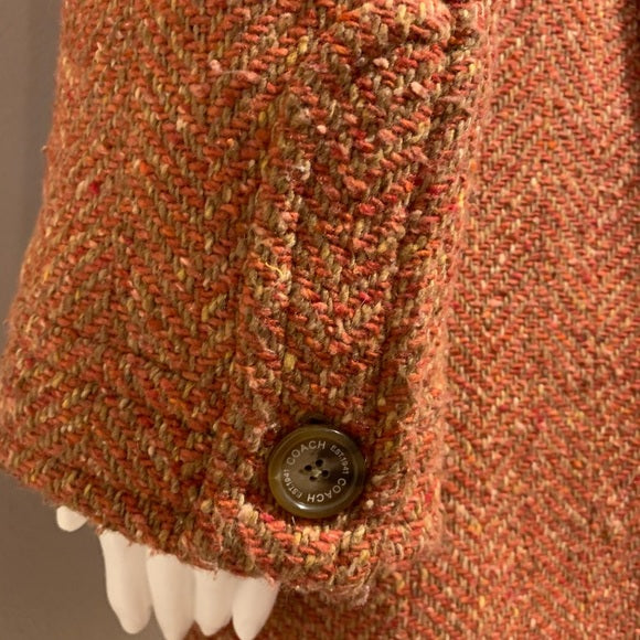 Coach Pink Herringbone Wool Tweed Coat with Leather Trim