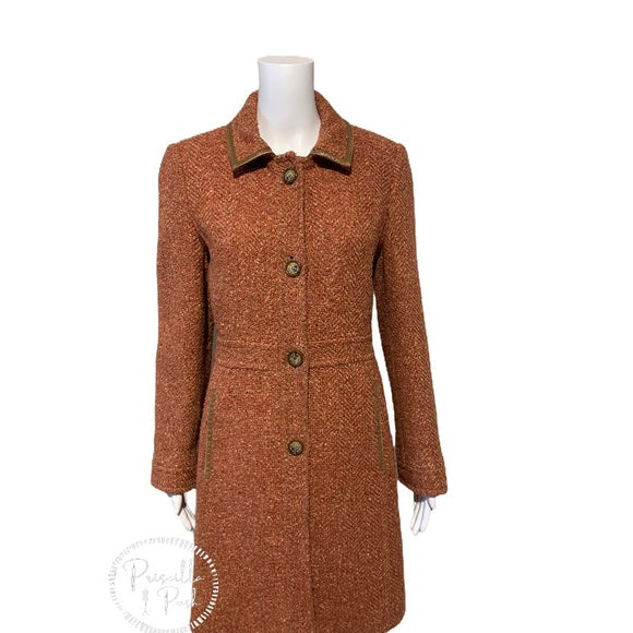 Approximate measurements: Length: 36” Bust: 20.5” Waist: 17.25” Sleeve length: 24” Shell: 80% Wool 20% nylon Lining: 100% polyester