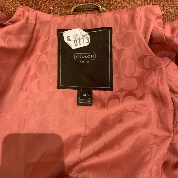 Coach Pink Herringbone Wool Tweed Trench Coat