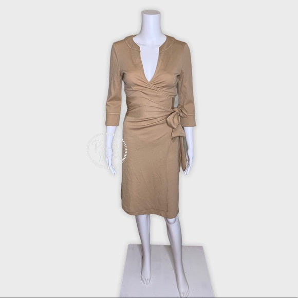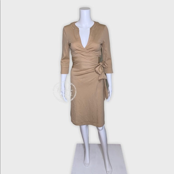 Diane Von Furstenberg Tan Khaki Wool Wrap Dress 6