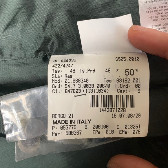 Perfect new condition with paper style tag on inner seam with replacement hardware attached