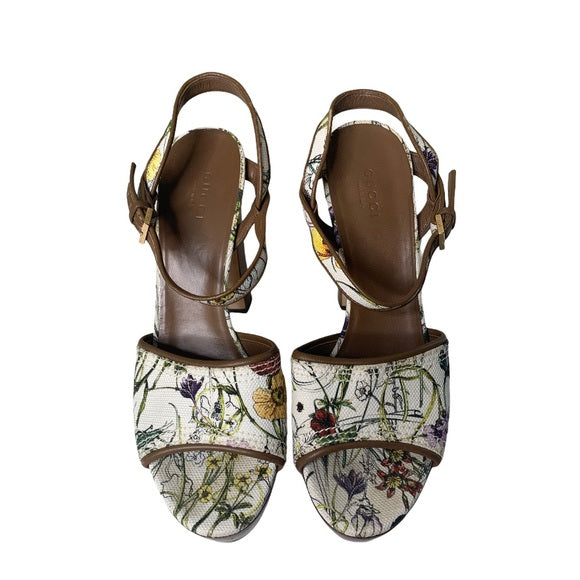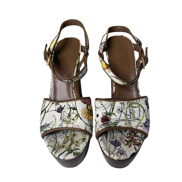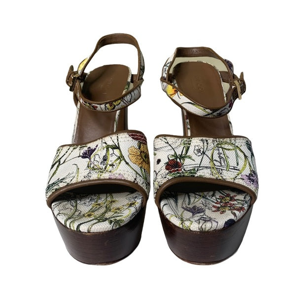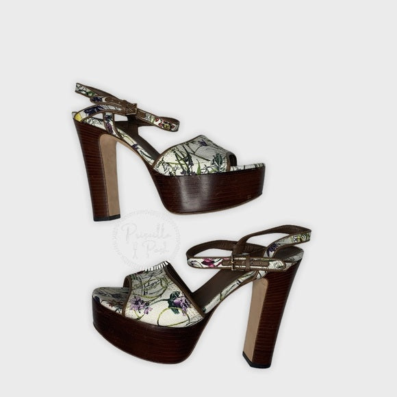 GUCCI Danielle Flora Canvas Clog Platform Sandal