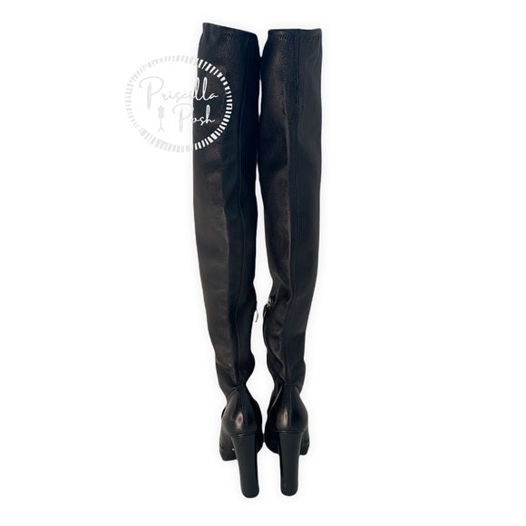 Gucci Black Leather Over the Knee Horsebit Heeled Boots