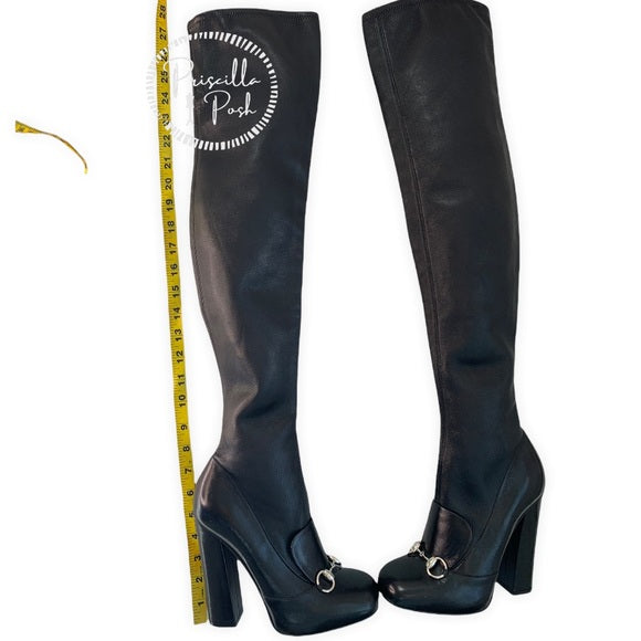 Gucci Horsebit Over The Knee Lillian Thigh High Black Leather Boots With Heel