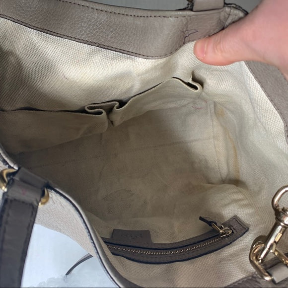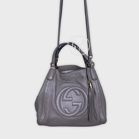 Gucci Soho Convertible Shoulder Bag Leather Taupe Grey Brown