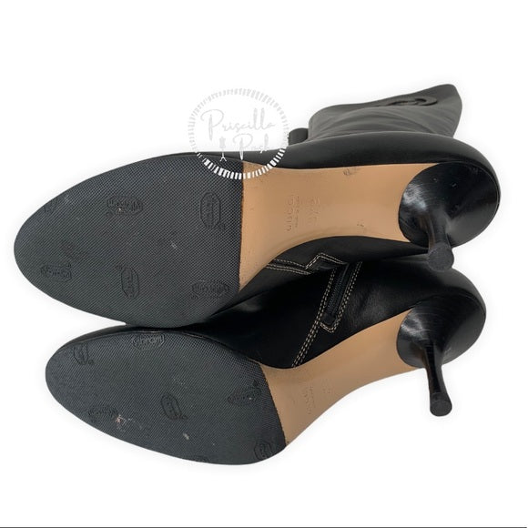 The Gucci Black Leather Tall Boots are a great addition to any wardrobe, dressy or casual! Leather lined upper and sole for a comfortable fit and a touch of class.