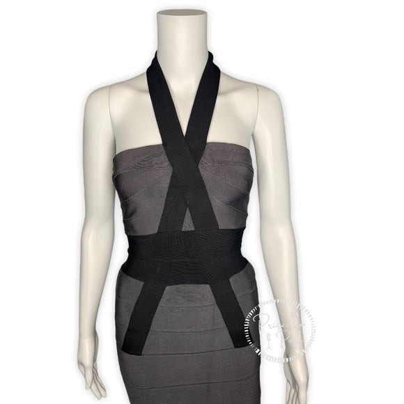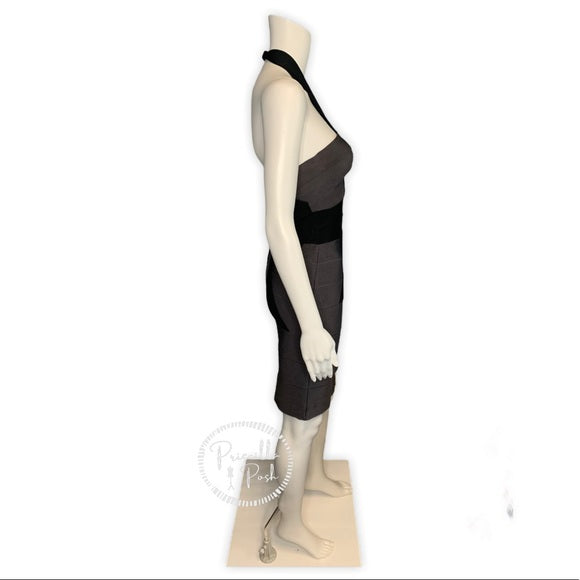 Herve Leger Black Grey Bow-Accented Bandage Dress