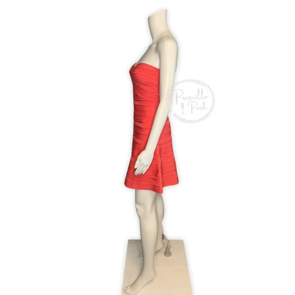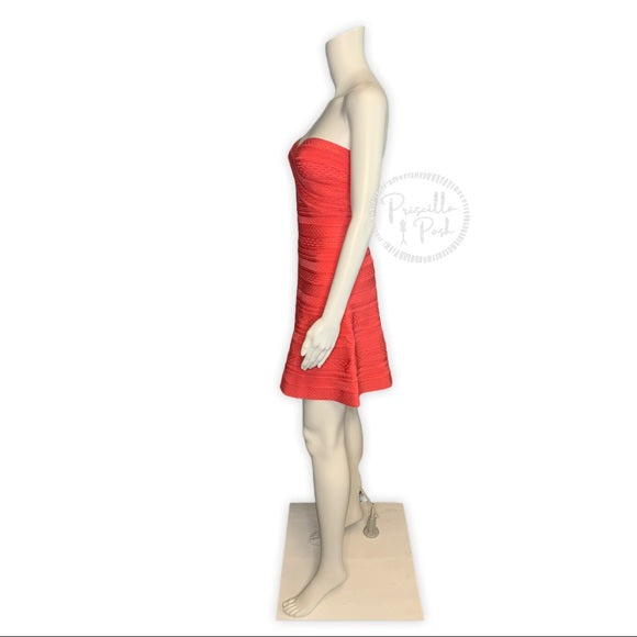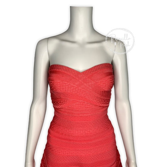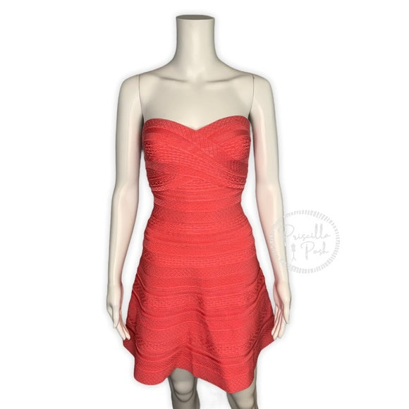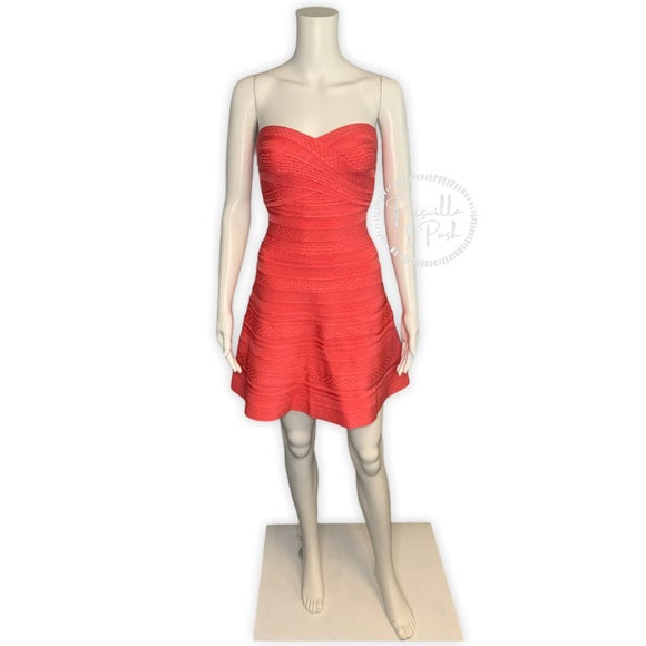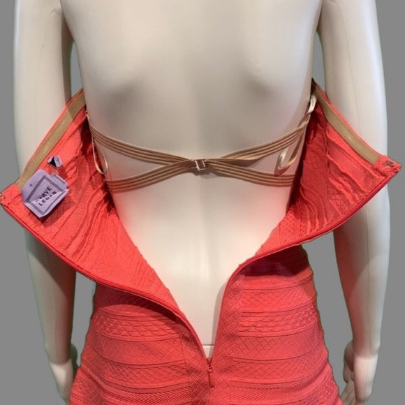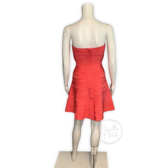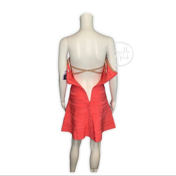 Hervé Leger Coral Akari Bandage Cocktail Dress