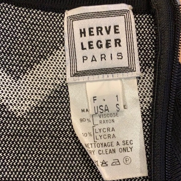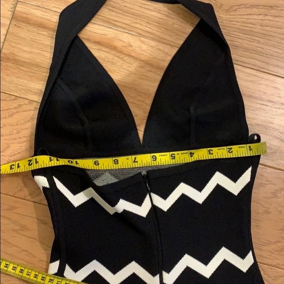 Herve Leger Black and White Chevron Halter Neck Backless Maxi Length Gown