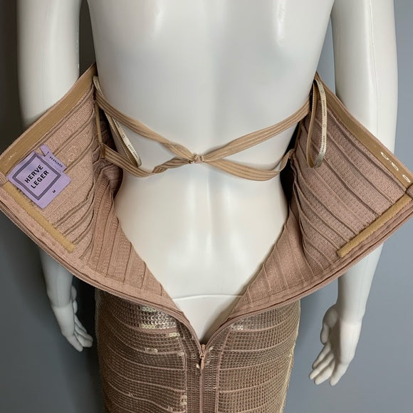 Herve Leger Nazik Sequin Bandage Dress, Bare Combo