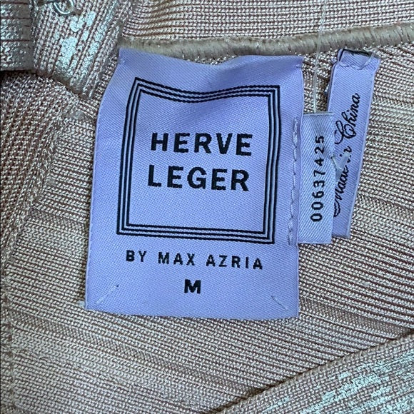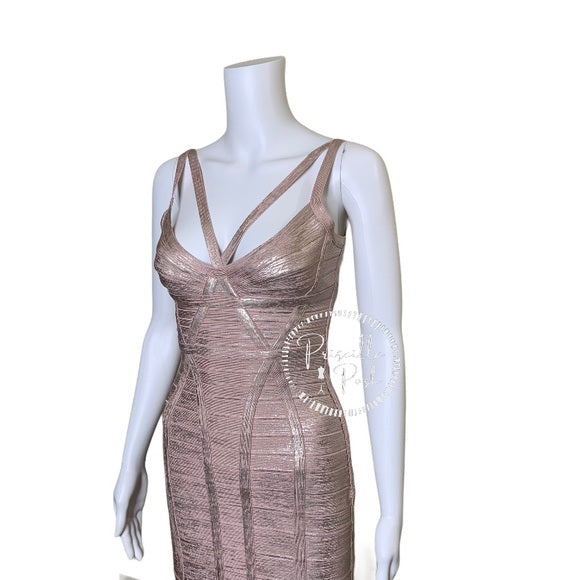 HERVÉ LÉGER Zhenya Woodgrain Foil-Print Bandage Gown cutout pleated metallic bandage gown