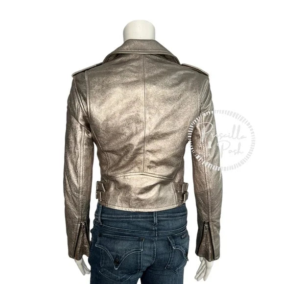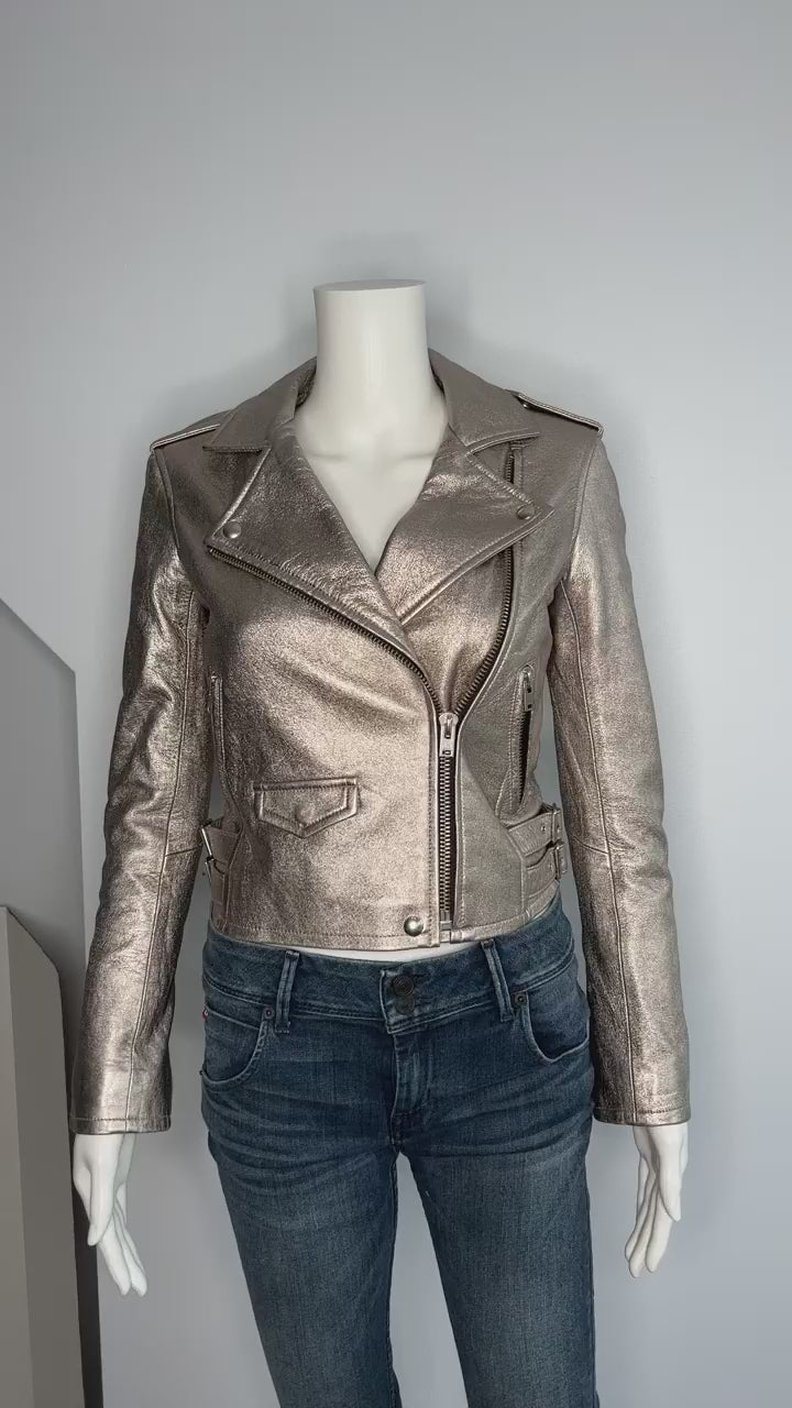 IRO Silver Ashville Cropped Metallic Leather Jacket Moto