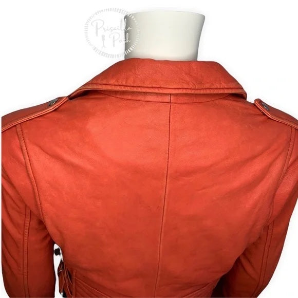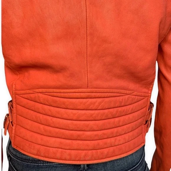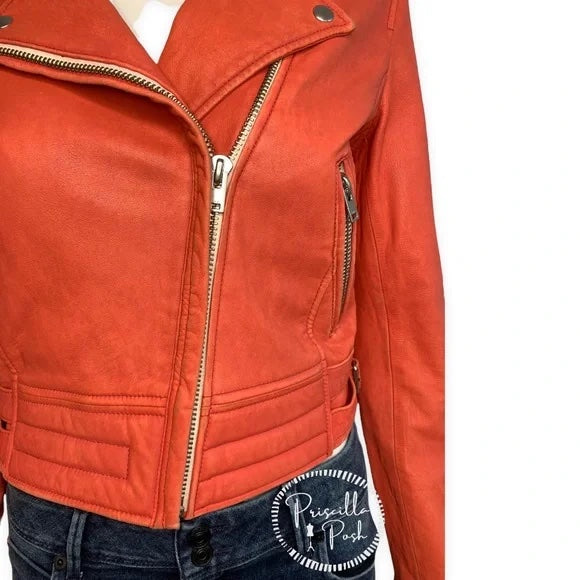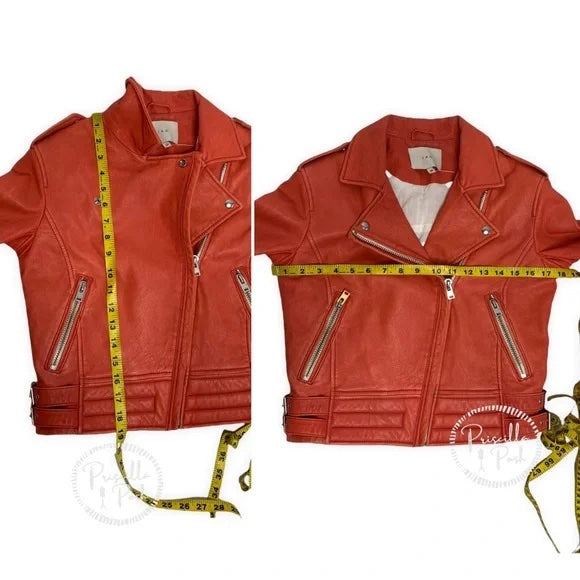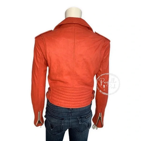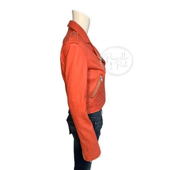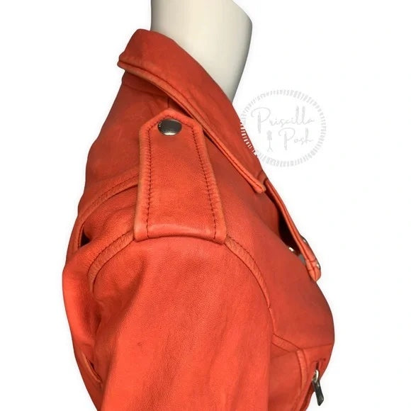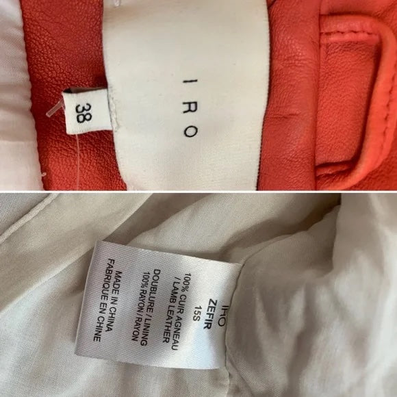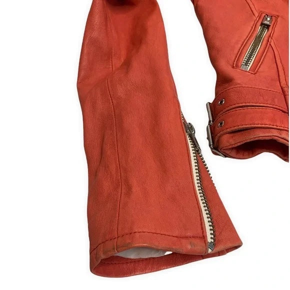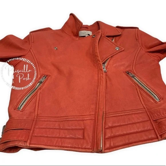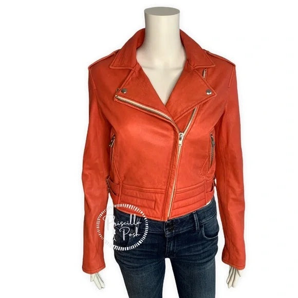 IRO Zefir Cropped Leather Zip Jacket, Light Red Orange Coral lamb leather Moto