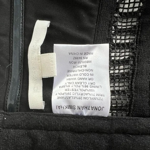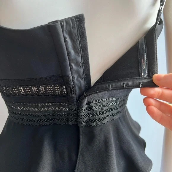 Jonathan Simkhai Black Crepe and Bonded Lace Peplum Cropped Top