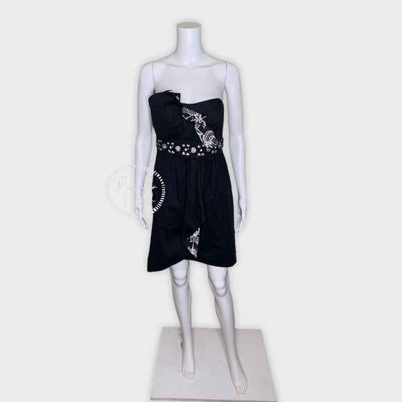Lilly Pulitzer Black Strapless Crystal Embellished Beaded Belt Dress