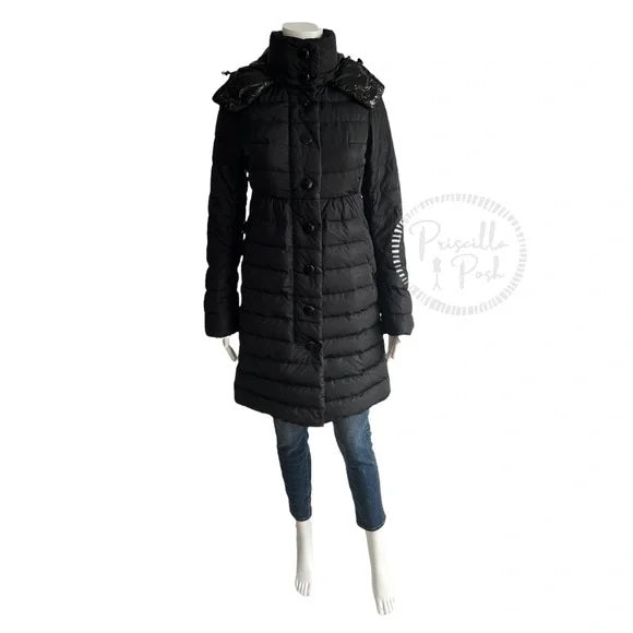 Moncler Black Knee Length Puffer Coat Goose Down Puffer Jacket Long Full Length