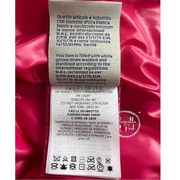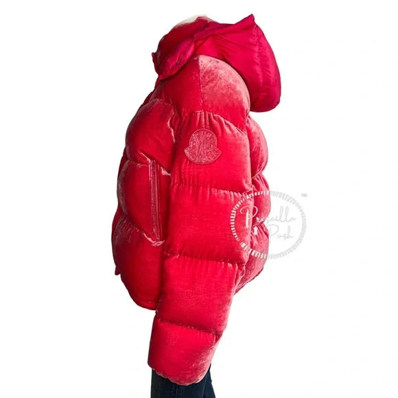 Moncler Hot Pink Velvet Quilted Down Puffer Jacket Goose Down Puffer Coat