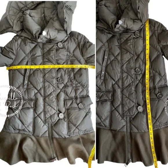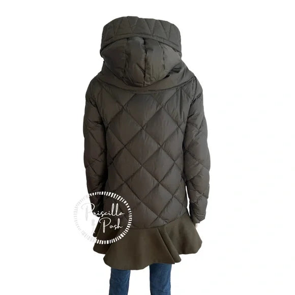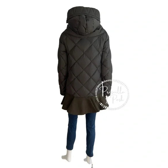 Moncler Vauloge Quilted Parka Jacket With Flounce Hem Olive Green Puffer Jacket