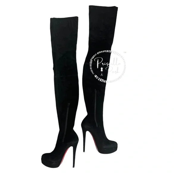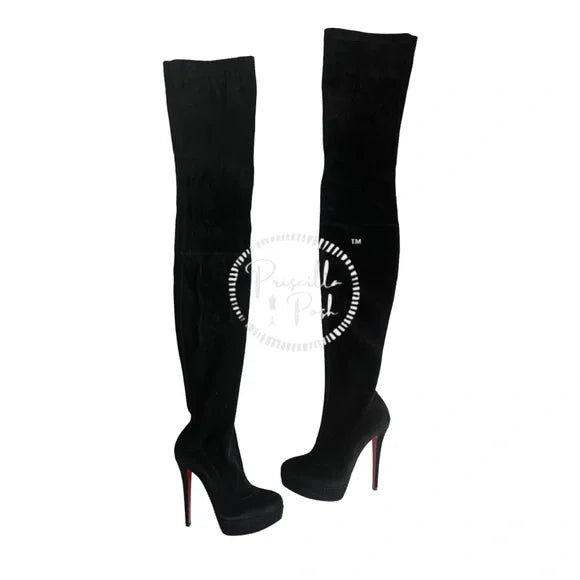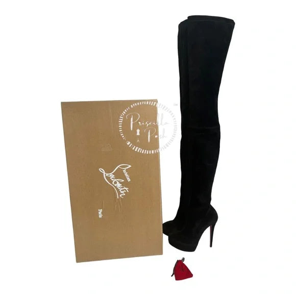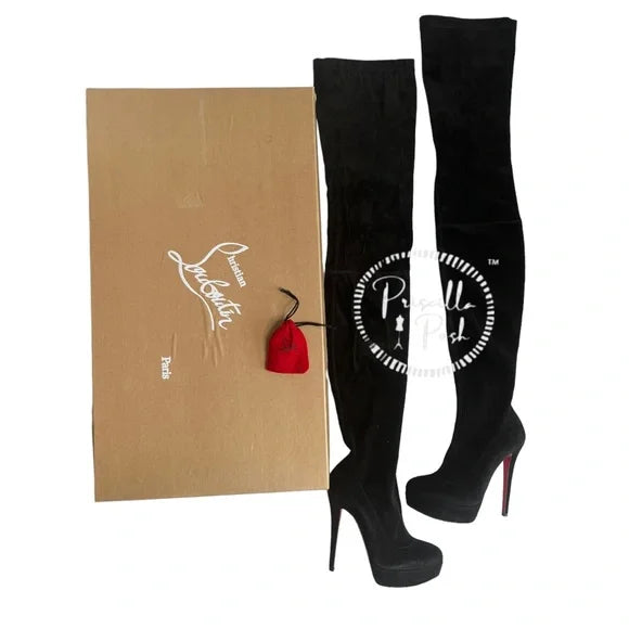 NWB Christian Louboutin Thigh High Black Suede Gazolina Boots