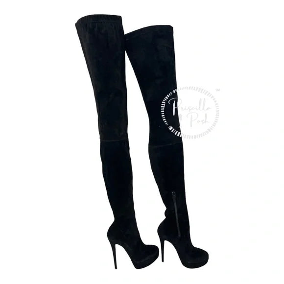 NEW Christian Louboutin Black Suede Gazolina Suede Over The Knee Boots 36.5