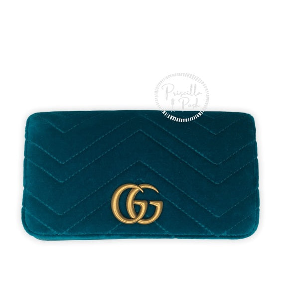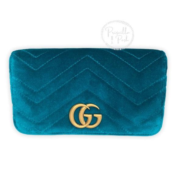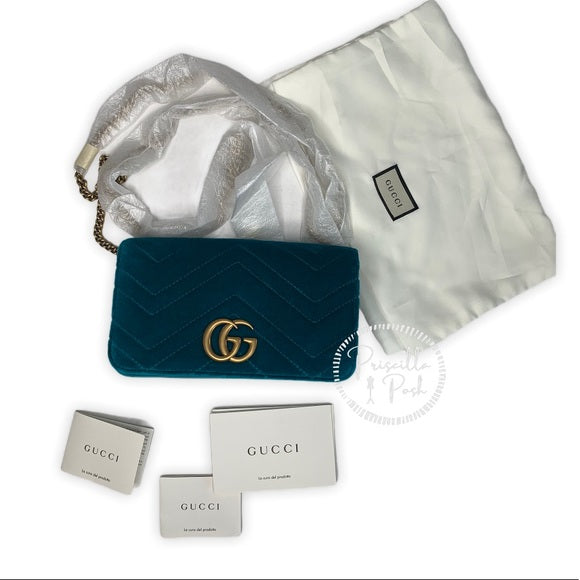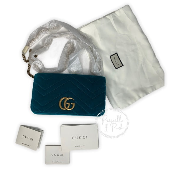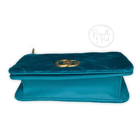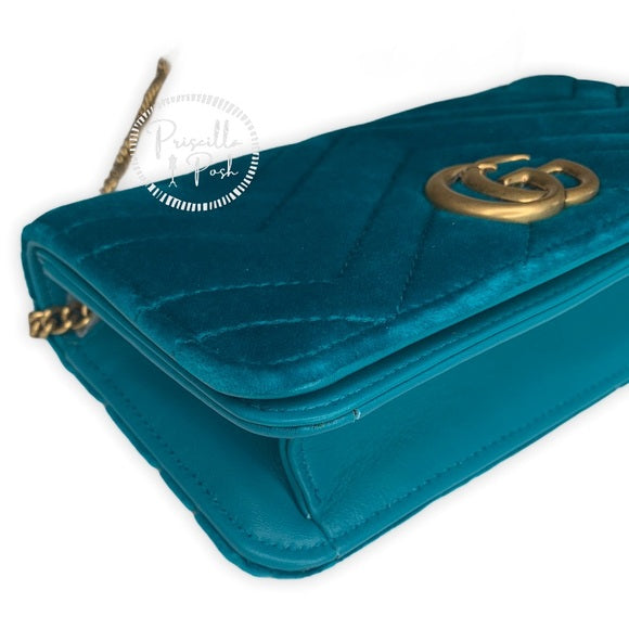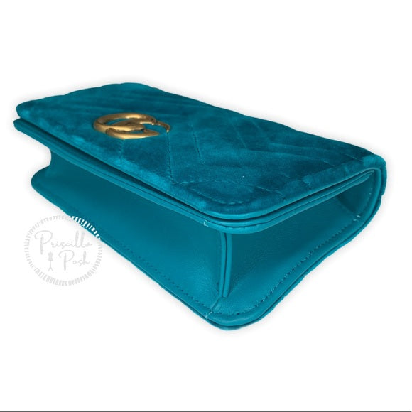 Gucci Marmont GG Velvet Mini Bag Teal Blue Green