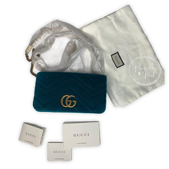 NEW GUCCI Marmont GG Velvet Mini Bag Teal