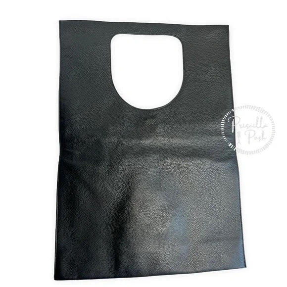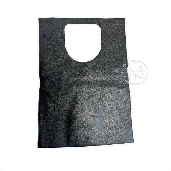 Kidskin with golden hardware. Can be carried with cutout top handle over the shoulder or folded over and held in hand. Padlock, key, and zip pouch attach to vertical side zip. 22"H x 15"W; bag weighs approx. 2lbs. Made in Italy.